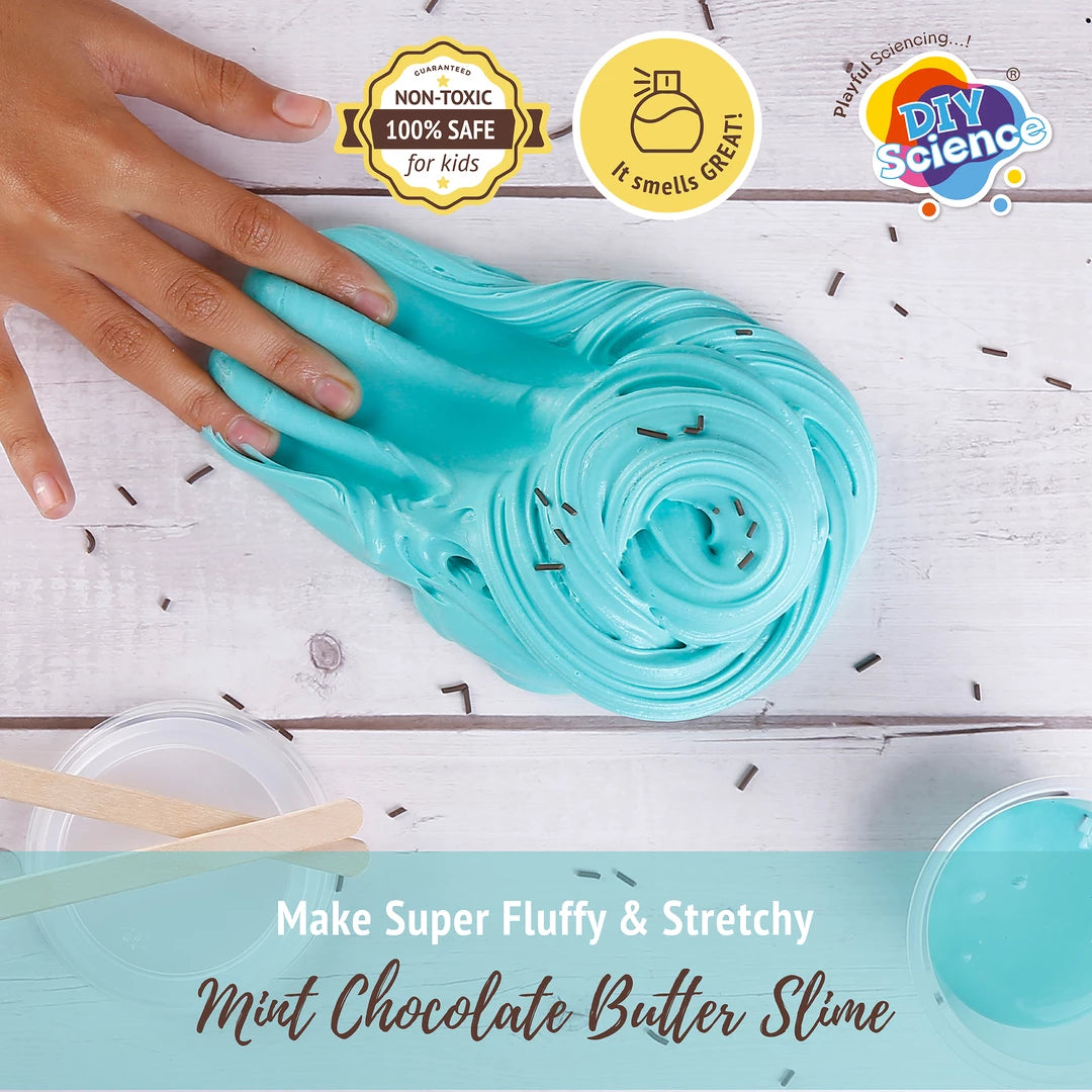 DIYScience® Mint Chocolate Butter Slime Kit, Slime Making Kit for Boys, Girls, and Kids, 8+ Years, Make Fluffy & Stretchy Butter Slime, Scented Slime Glue, Activator Gel, Ultralight Foam Clay, Choco Sprinkles